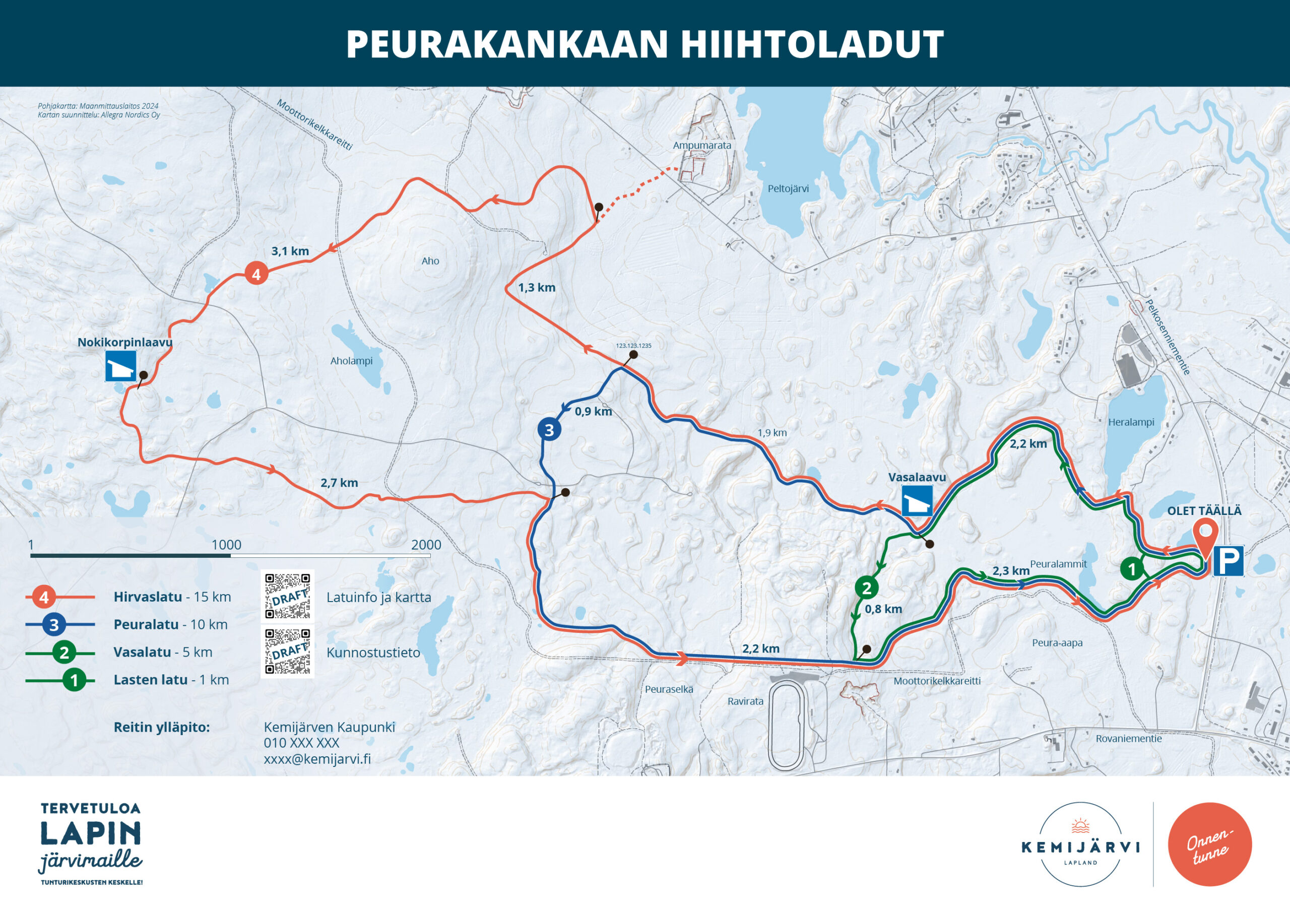 Ajantasaisen latujen kunnossapitoinfo löydät InfoGIS pavelusta https://www.infogis.fi/kemijarvi/