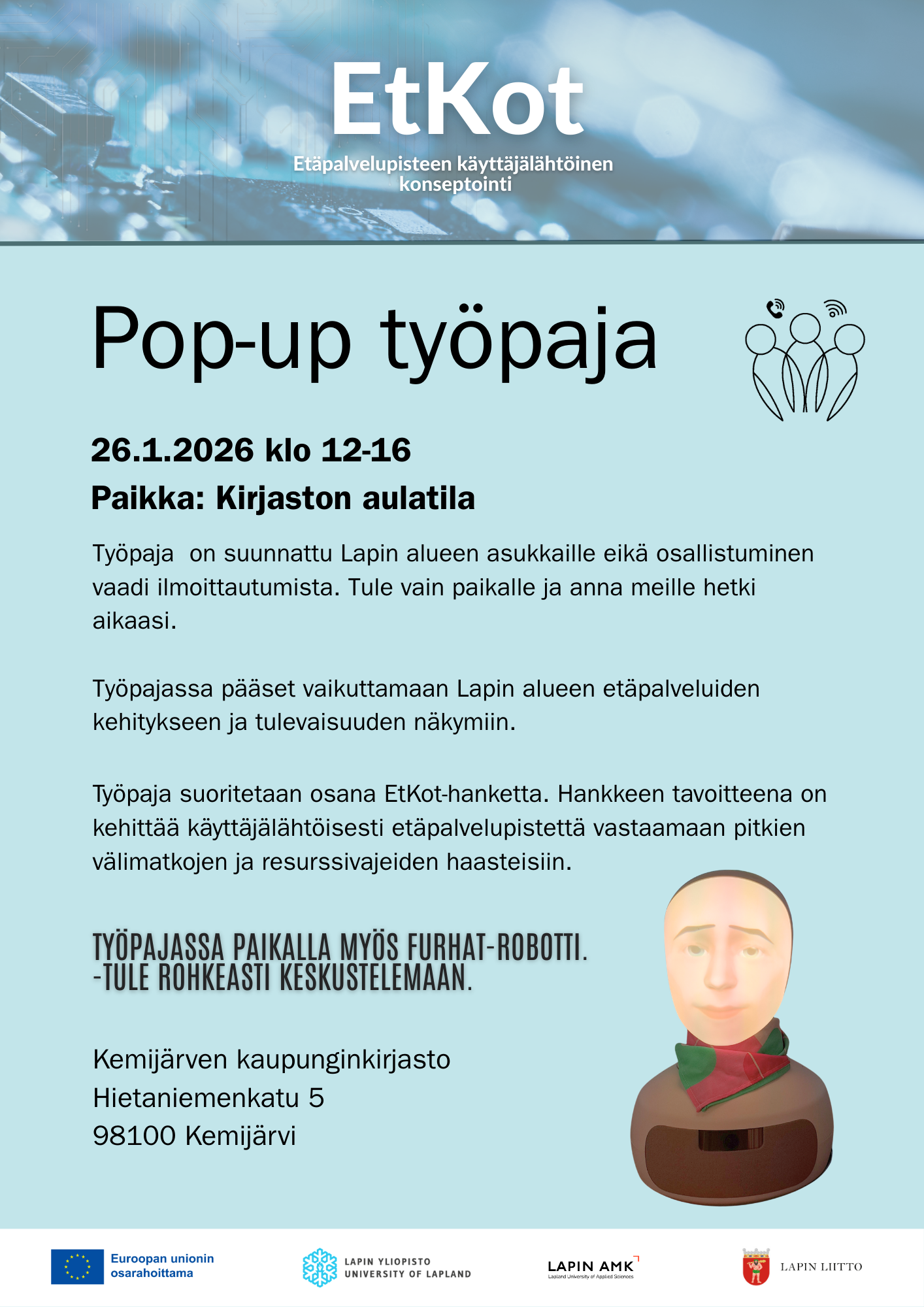 Etäpalveluiden kehittäminen Lapin alueella (EtKot-hanke)- Pop-up työpaja kirjastolla