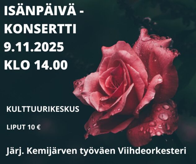 Kemijärven Työväen Viihdeorkesterin perinteinen Isänpäiväkonsertin vierailevina esiintyjinä Niko Mäenalanen, Külli Kudu ja Sara...