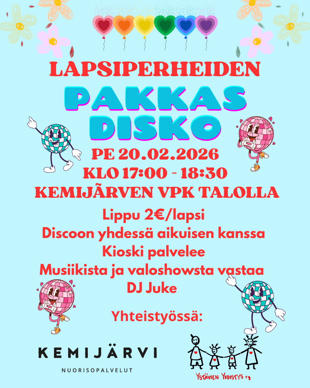 Pakkasbiledisco VPK:n talolla perjantaina 22.02. klo 17-18:30 alle kouluikäisille.