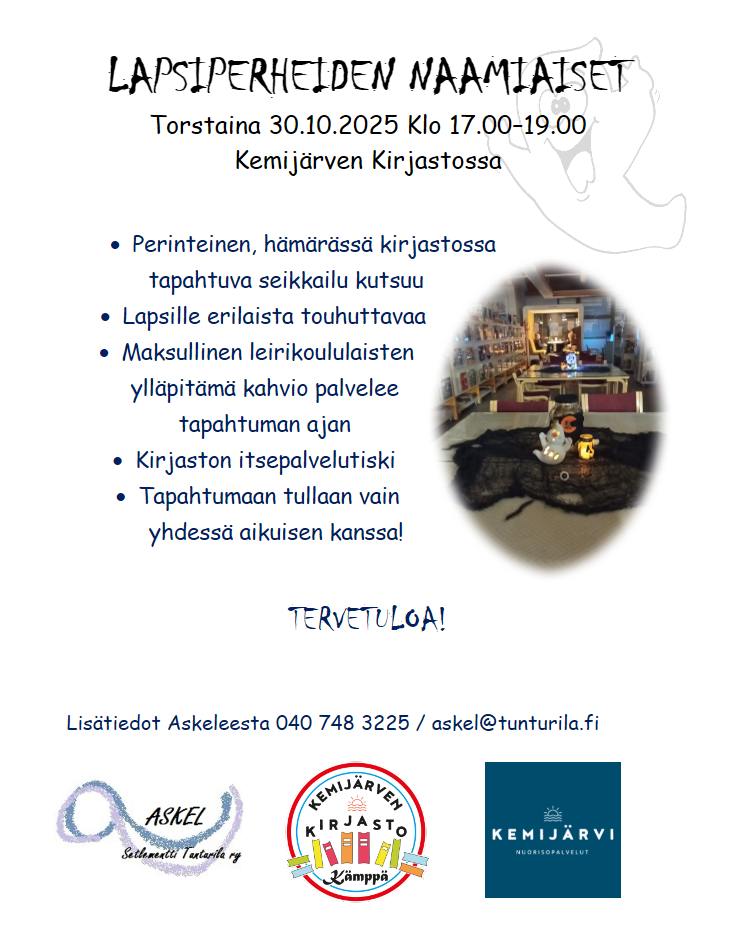 To 30.10.2025 Klo 17.00–19.00 Kemijärven Kirjastossa Perinteiset Naamiaiset kirjastolla nyt isompana kuin aikaisemmin,...