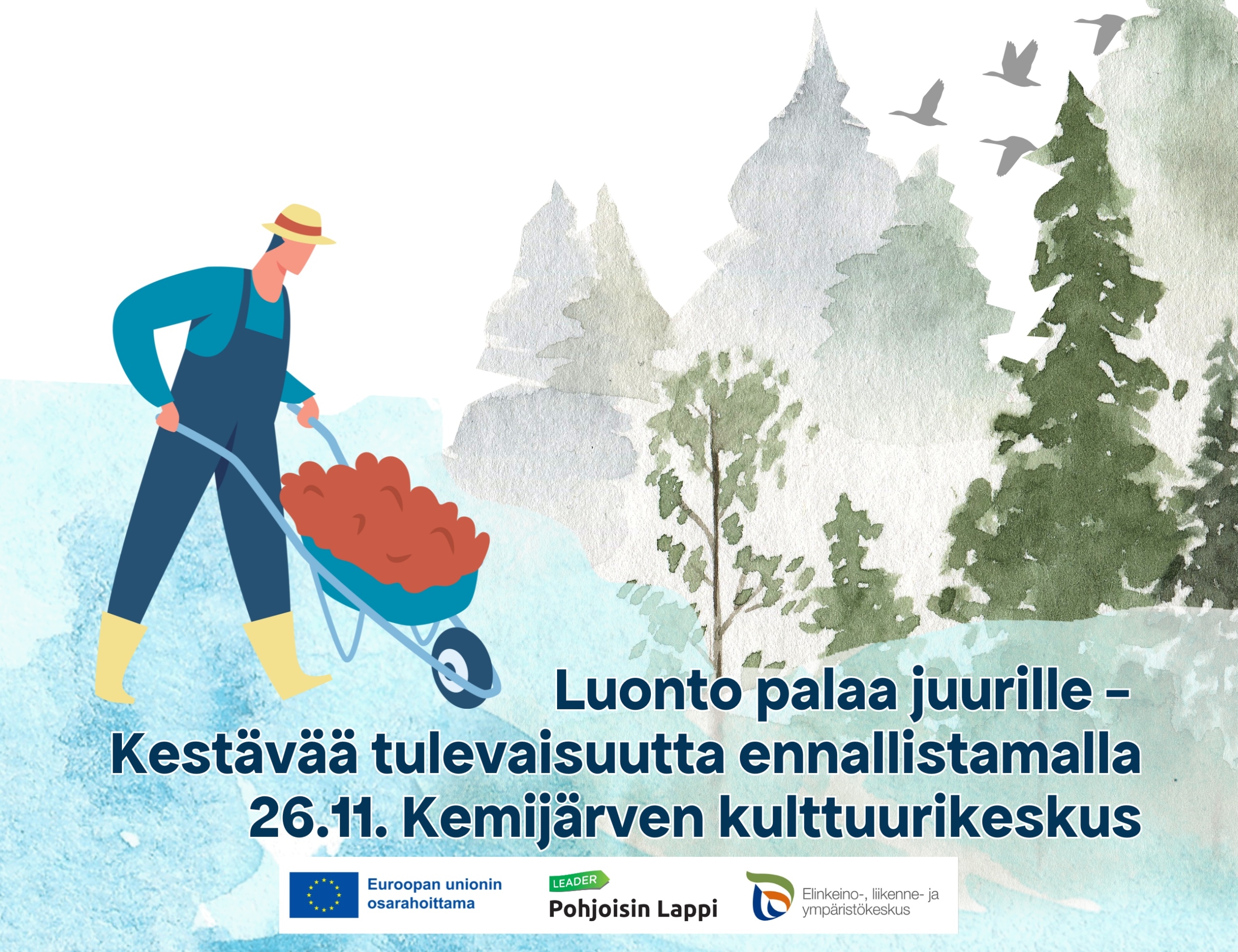 Luonto palaa juurille – Kestävää tulevaisuutta ennallistamalla -tilaisuus järjestetään yhteistyössä Leader Pohjoisin Lappi ry:n hankkeen Puhtaat poukamat ja raikkaat rannat (PUHTO), Pohjois-Pohjanmaan ELY-keskuksen PUHTI-hankkeen, ELY-keskusten valtakunnallisen ilmastoyksikön, sekä Suomen Riistanhoitosäätiön ja Metsäkeskuksen kanssa. Tilaisuus on suunnattu erityisesti metsän-, maatalousmaiden ja turvetuotantoalueiden omistajille, mutta on avoin kaikille ennallistamisesta ja valuma-aluekunnostuksista kiinnostuneille!