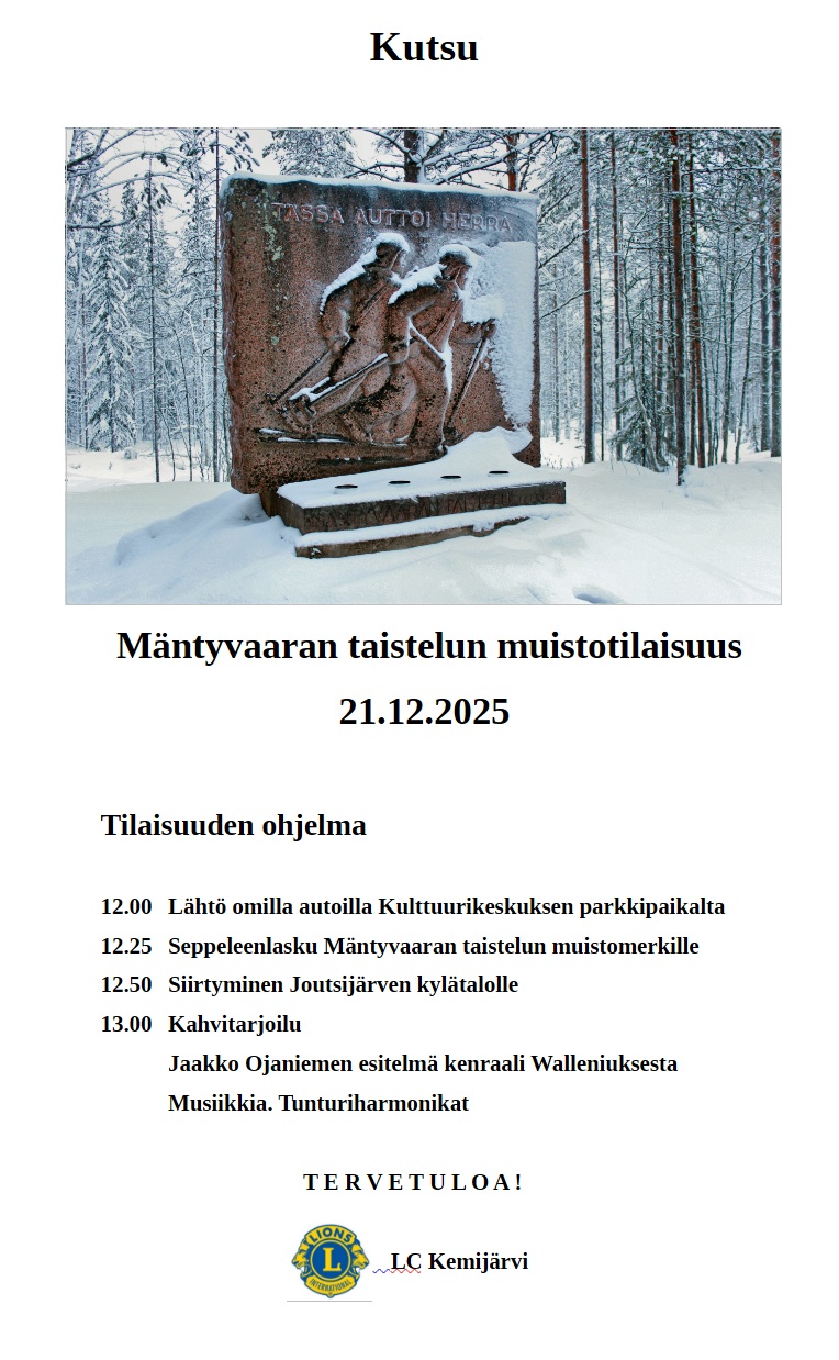 Mäntyvaaran taistelun muistotilaisuus 21.12.2025