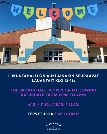 Liikuntahalli on yleisesti avoinna syys-toukokuussa.