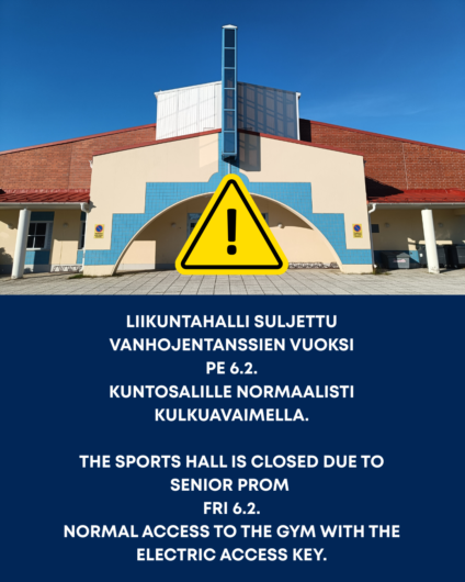 Liikuntahalli on yleisesti avoinna syys-toukokuussa.