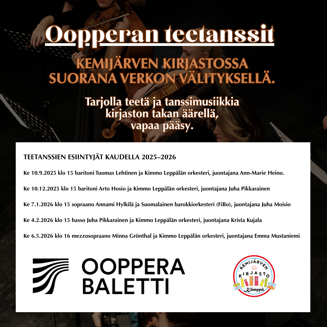 Tarjolla teetä ja tanssimusiikkia kirjaston takan äärellä, suorana verkon välityksellä Ooperatalolta!