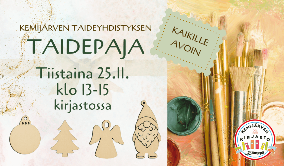 Tule maalaamaan itsellesi jouluinen puukoriste – Kemijärven taideyhdistyksen taidepaja kirjastolla tiistaina 25.11. klo 13-15.