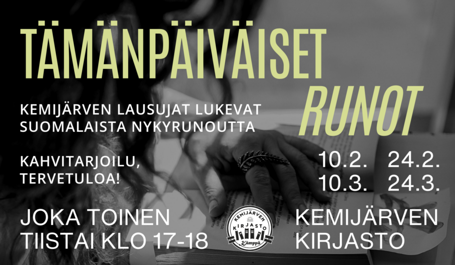 Ti 24.2. Kemijärven Lausujat kutsuvat kaikkia kuulemaan ”Tämänpäiväisiä runoja” Kemijärven kirjastoon kello 17-18.